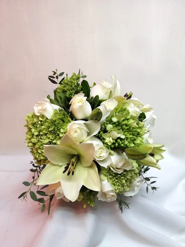 Ramo para novia con lilis, rosas, hortensias